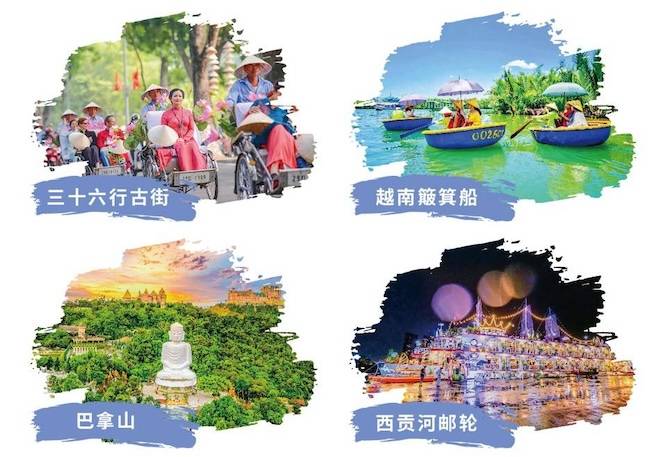 5. 行程中所含景点门票及活动项目:胡志明故居、河内文庙、下龙湾、会安古城、巴拿山(缆车往返费用+巴拿山门票+巴拿山自助午餐套票)、独立宫;三轮车游三十六行古街、越南水上木偶剧、迦南岛:越南簸箕船+钓螃蟹体验、DIY灯笼体验、印象会安实景秀、美寿湄公河之旅、越南滴滴壶咖啡、西贡河晚餐邮轮之旅。