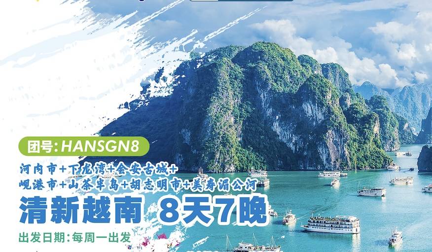 ZH-HANSGN9 清新越南 | 河内市+下龙湾+会安古城+岘港市+山茶半岛+胡志明市+美寿湄公河 9天7晚游