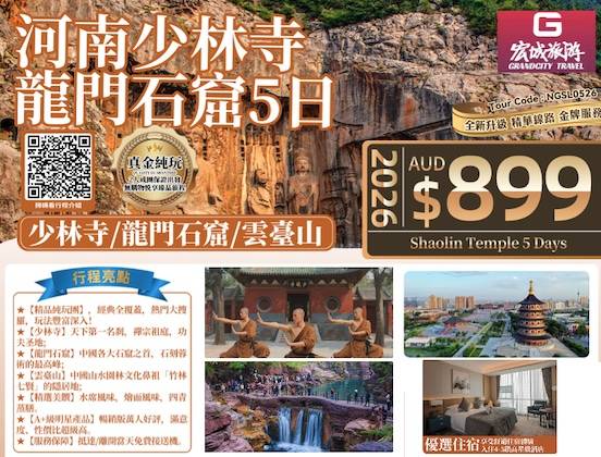 【真金纯玩】ZGM 河南少林寺/龙门石窟/云台山5日游
